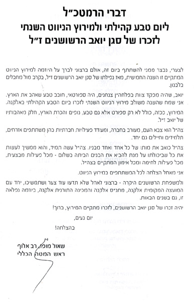 דבר המזכ"ל